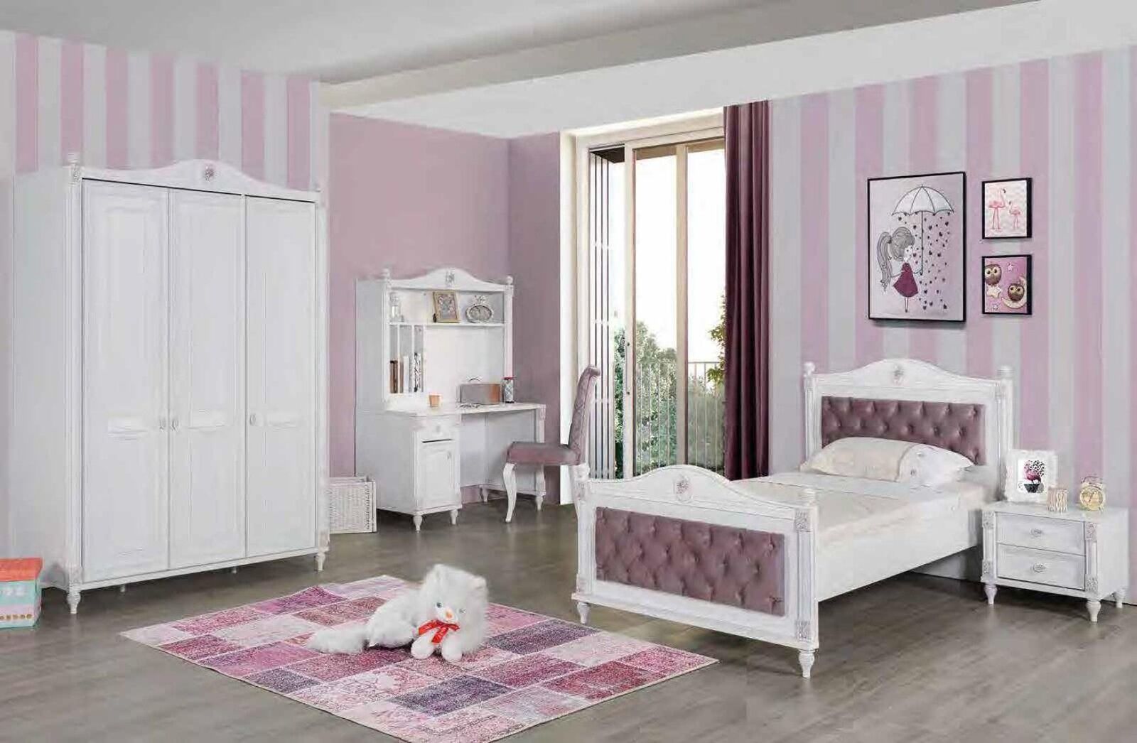 Dormitorio juvenil cama mesa de noche armario escritorio conjunto de 4 piezas.