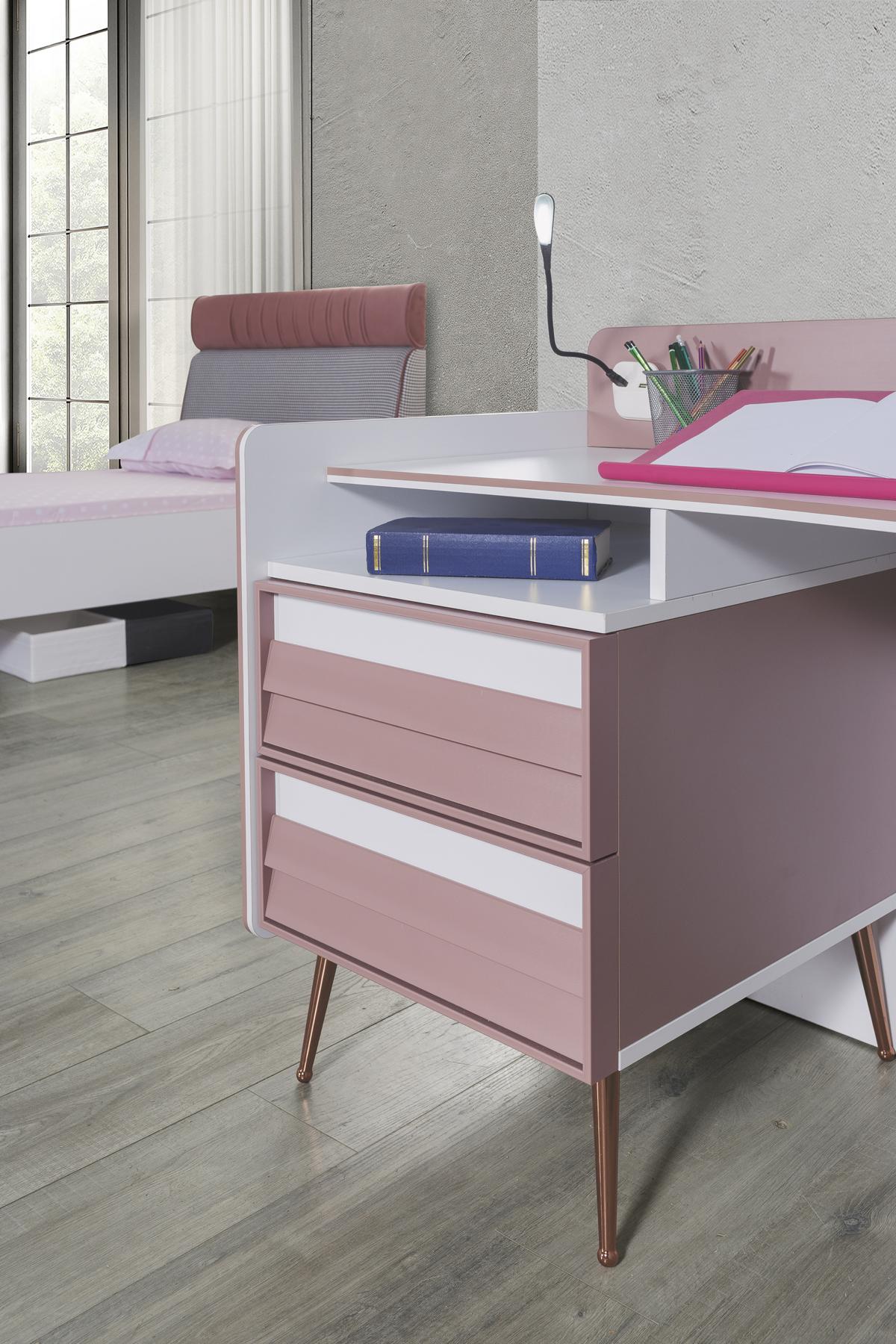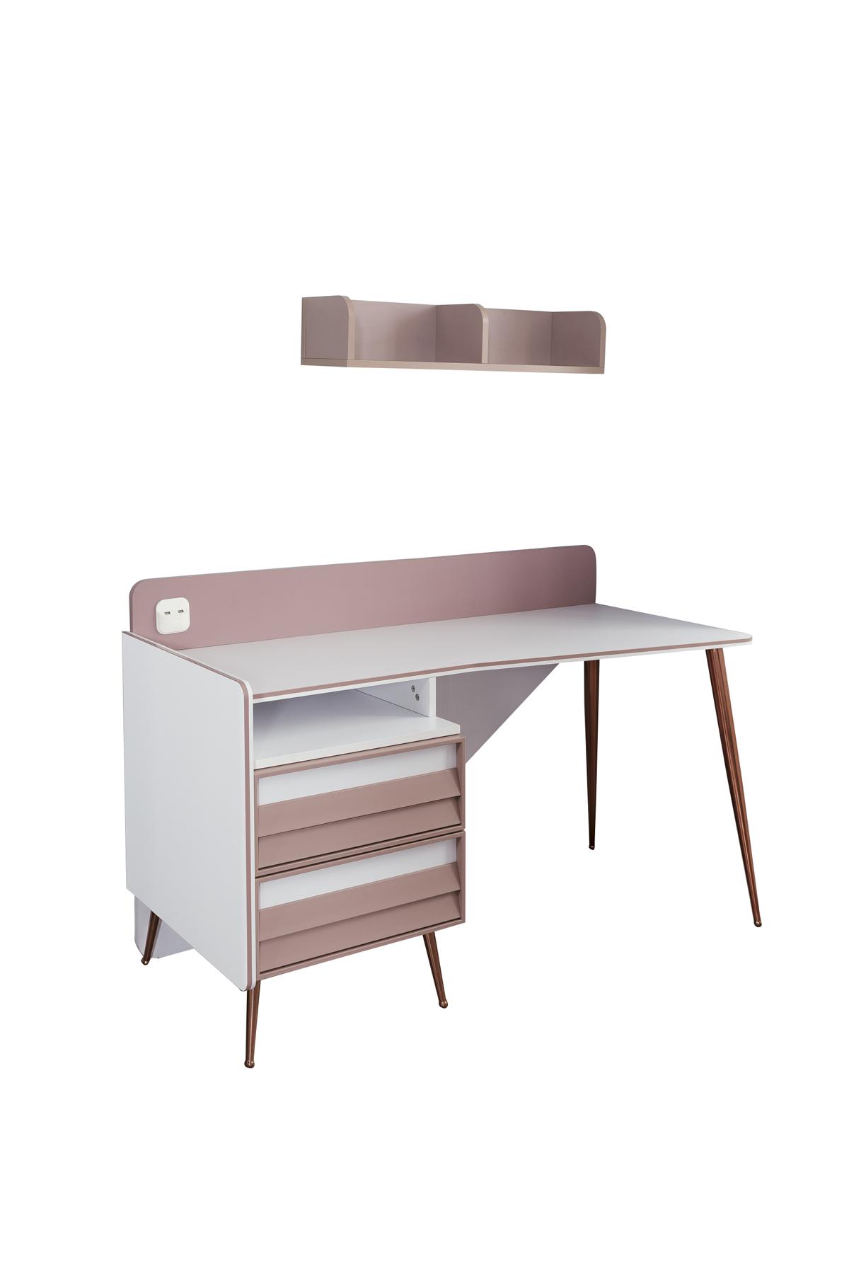 Escritorio de madera rosa, mesa, escritorio, estante, muebles, diseño de sala juvenil.