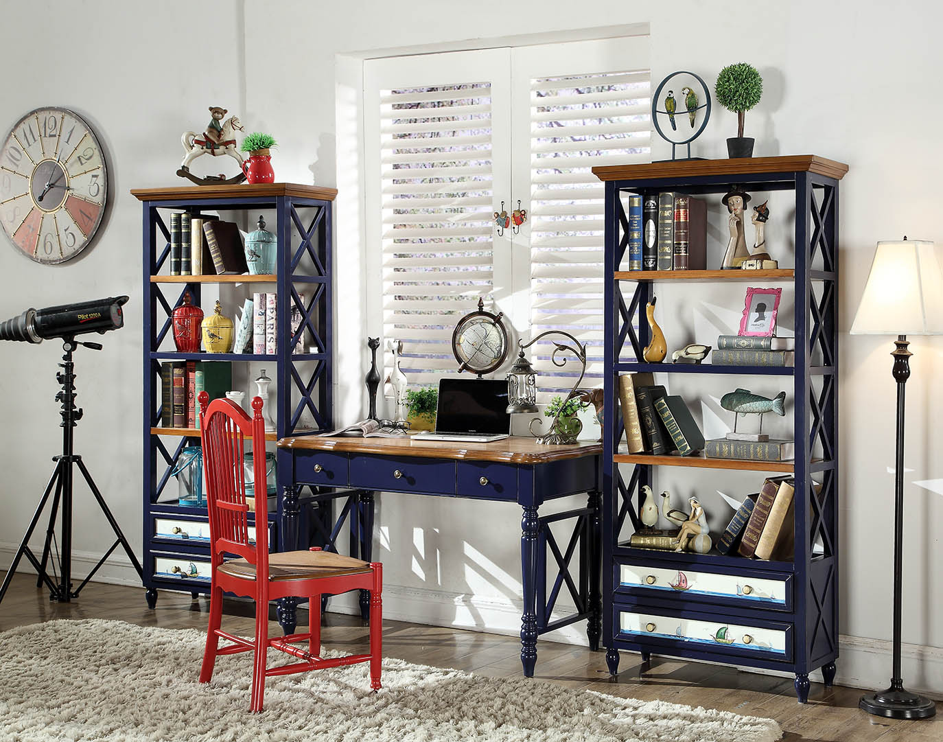 Escritorio de estilo clásico, escritorio de diseñador azul