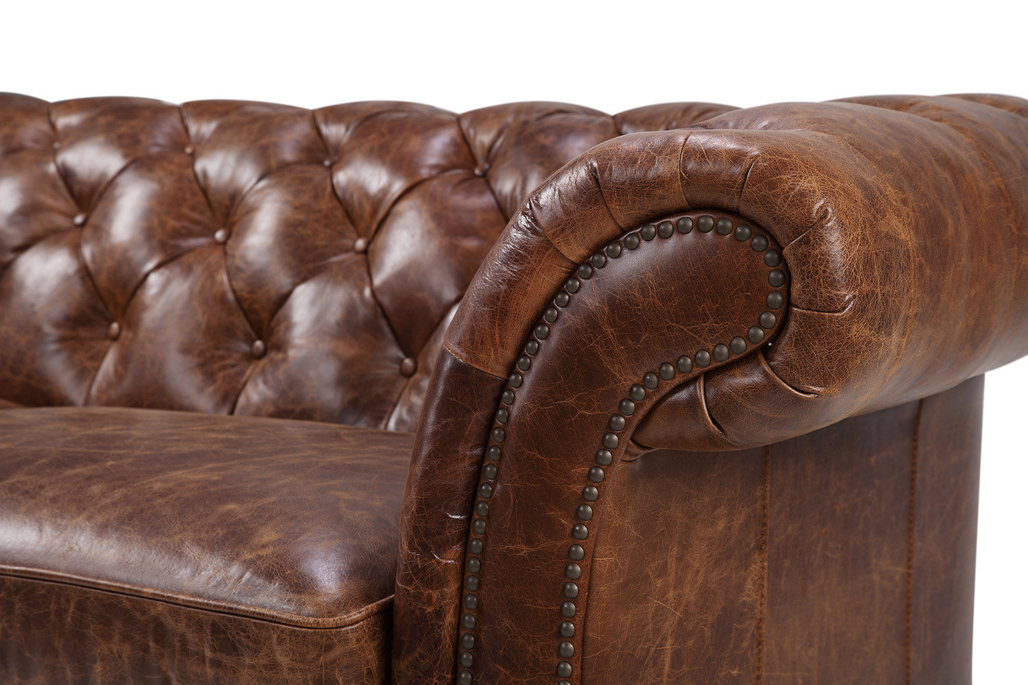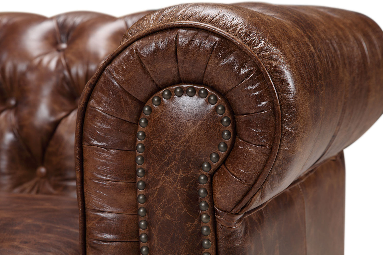 El Chesterfield 100% Cuero Genuino Sofá de Cuero es la definición de lujo y comodidad en su hogar. Con medidas aproximadas de 210cm x 90cm x 80cm, este sofá clásico ofrece un diseño atemporal que se adapta perfectamente a cualquier espacio. Fabricado con 100% Cuero de res italiano auténtico, este sofá garantiza durabilidad y elegancia. La elección de color libre te permite personalizar tu sofá para que se ajuste a tu estilo y decoración. Además, la estructura interna de madera auténtica brinda una firmeza y estabilidad excepcionales, asegurando una experiencia de asiento cómoda y duradera.