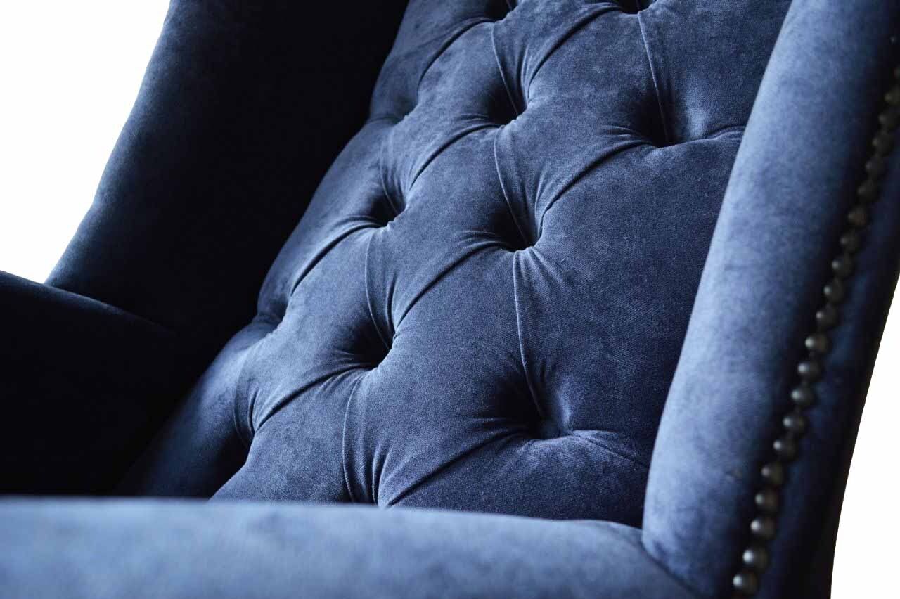 Chesterfield Design Sillón acolchado de lujo azul de tela sillones orejeros