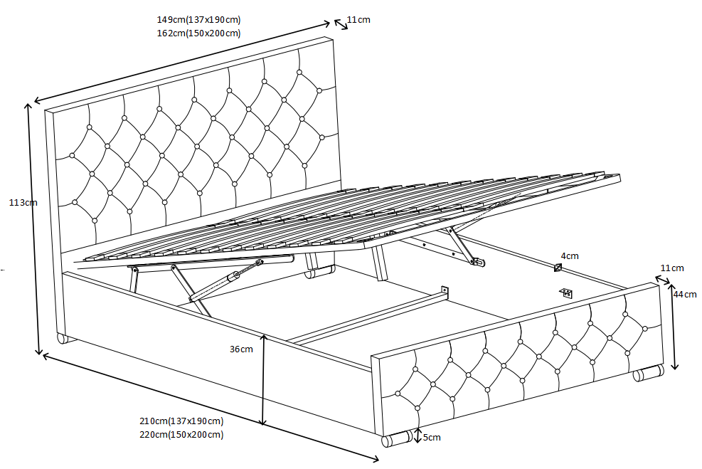 Superficie de descanso 140 x 200 cm (Dimensiones exteriores 140 x 200 cm)