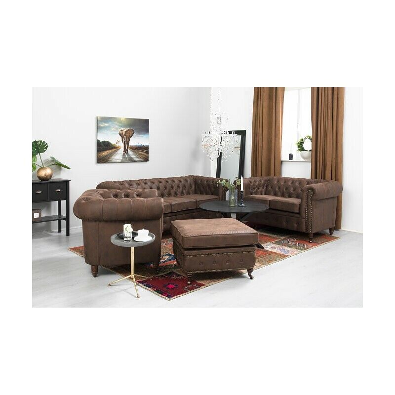 Chesterfield conjunto de sofás 3+2+1 plazas + taburete sofá de cuero tela sofás.