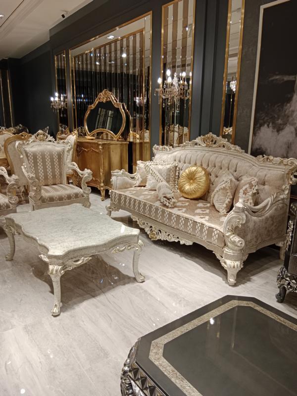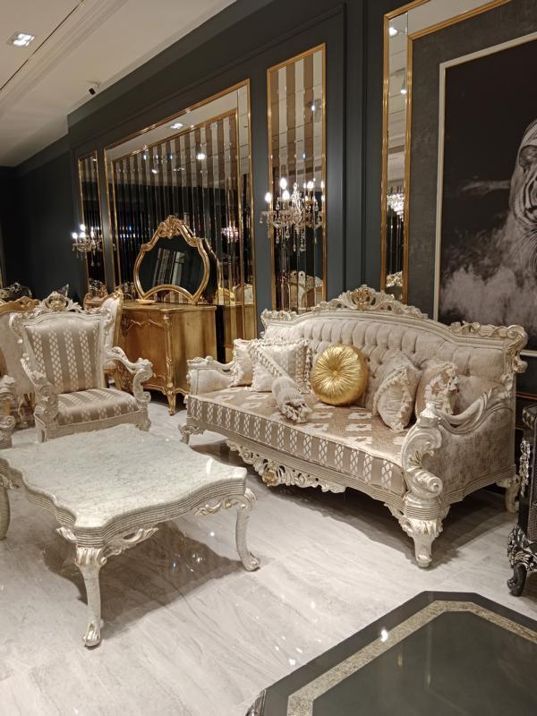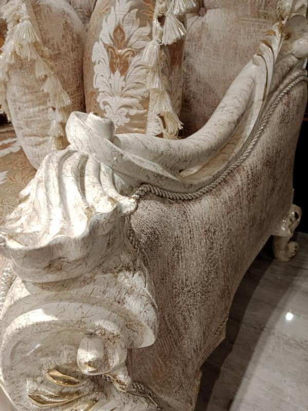 Detalles adicionales: Los sofás de 3 plazas, con dimensiones aproximadas de 220 x 74 x 125 cm, ofrecen amplitud y estilo a la sala de estar. Los sillones, aproximadamente de 70 x 60 x 121 cm, complementan perfectamente el conjunto. Fabricados con madera de alta calidad y materiales textiles resistentes, este conjunto garantiza durabilidad y confort a largo plazo. Disponible en un elegante color mostrado, con opciones de personalización a solicitud. Disfrute de un ambiente exclusivo y acogedor en su sala de estar con esta selección de muebles sofisticados.