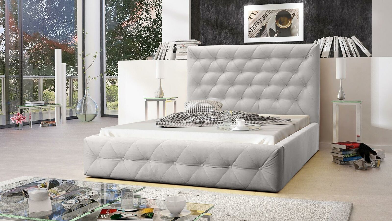 La 'Moderna cama de diseño de madera, elegante mueble, camas dobles, nuevo dormitorio' es la elección perfecta para quienes buscan combinar estilo y funcionalidad en su habitación. Con una superficie de descanso de 140 x 200 cm y dimensiones totales de aproximadamente 220 x 158 x 115 cm, esta cama ofrece espacio suficiente para garantizar un sueño reparador. Disponible en una gama de tamaños que van desde 160 x 200 cm hasta 200 x 200 cm, esta cama se adapta a cualquier necesidad. La estructura interna de madera auténtica asegura durabilidad y resistencia, mientras que la base de núcleo de muelles proporciona un soporte óptimo. Disfrute de la libertad de elegir el color y el material que mejor complemente su decoración, desde tela básica hasta cuero sintético premium.
