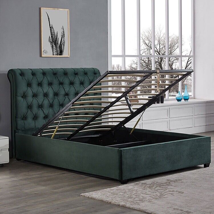 Moderna cama doble Chesterfield verde de diseño camas de lujo.