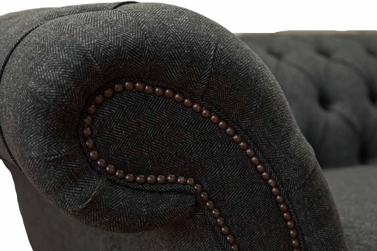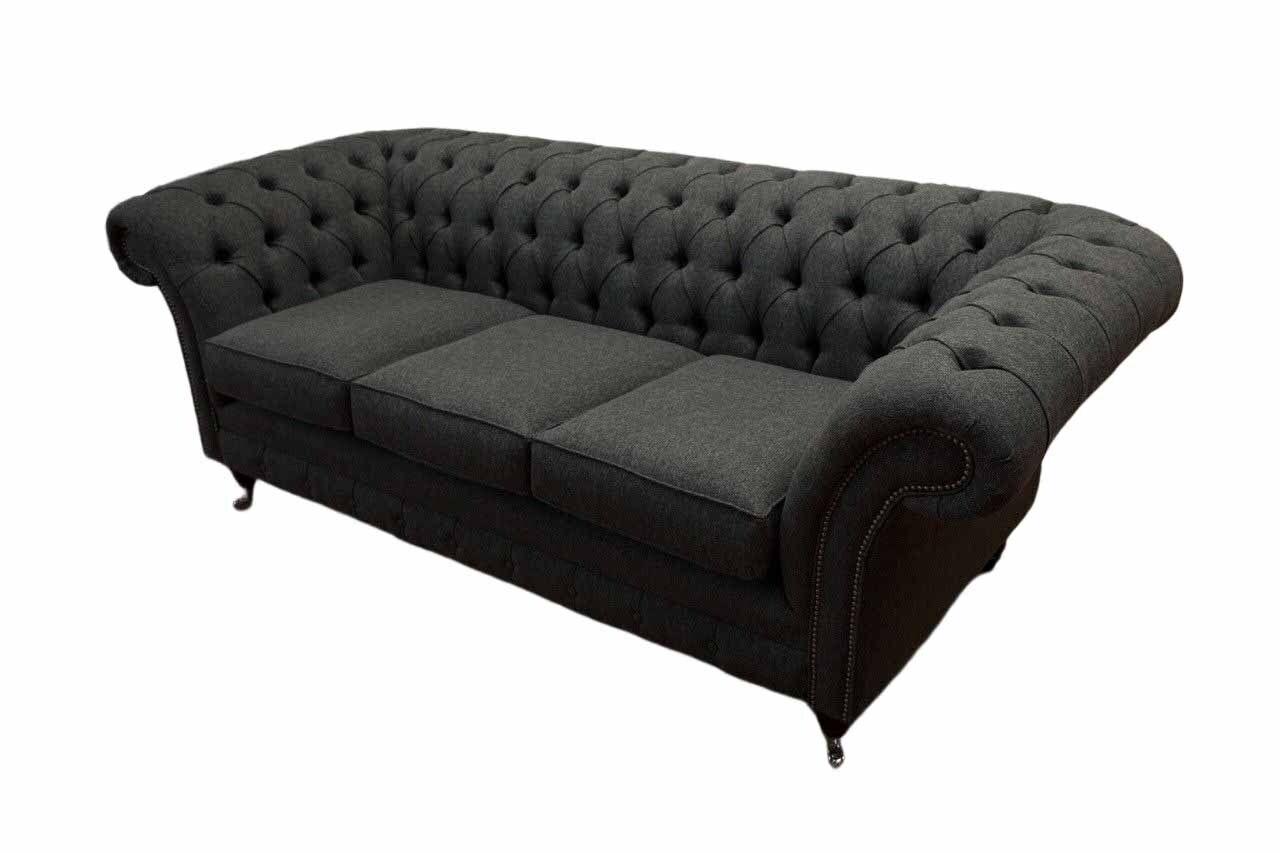 Chesterfield Tela Tapizado Diseño Sofá Lujo Sofá Gris de 3 Plazas
