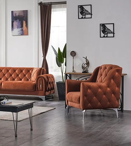 El Sillón de lujo marrón Chesterfield es la máxima expresión de elegancia y confort, diseñado para quienes aprecian la sofisticación en cada detalle. Su tapizado en poliéster de alta calidad ofrece una textura suave y duradera, mientras que su tonalidad marrón aporta calidez y distinción a cualquier salón. Este icónico sillón, con sus líneas clásicas y su estructura robusta, es una pieza central que transforma el ambiente en un refugio exclusivo. Con más de 20 años creando muebles de lujo, nuestra marca garantiza un diseño atemporal que no solo realza su espacio, sino que también refleja un estilo de vida refinado. Elegir este sillón es optar por el arte de vivir con distinción.
