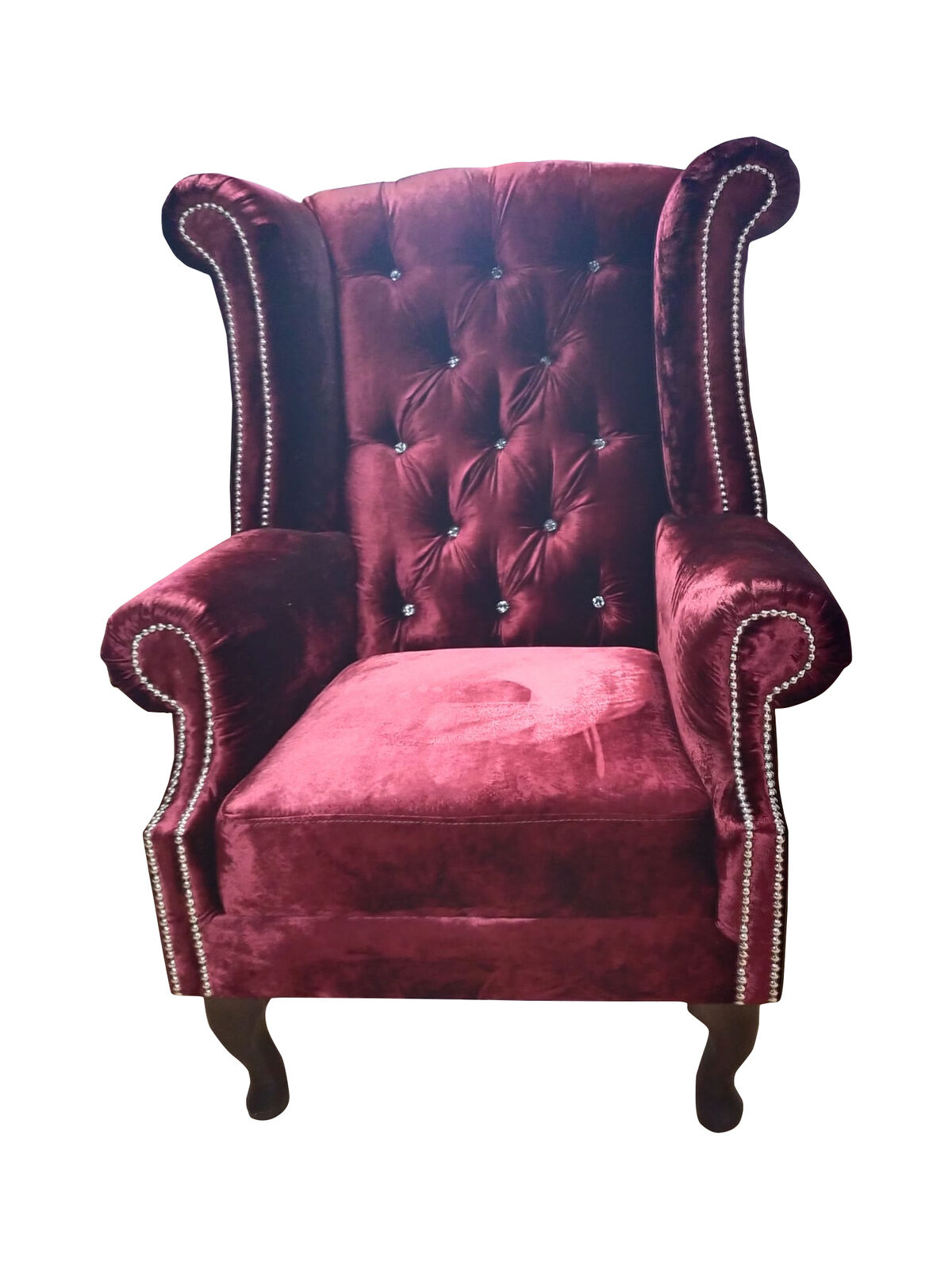 Sillón Chesterfield de orejas, sillón de terciopelo rojo, sofá individual moderno.