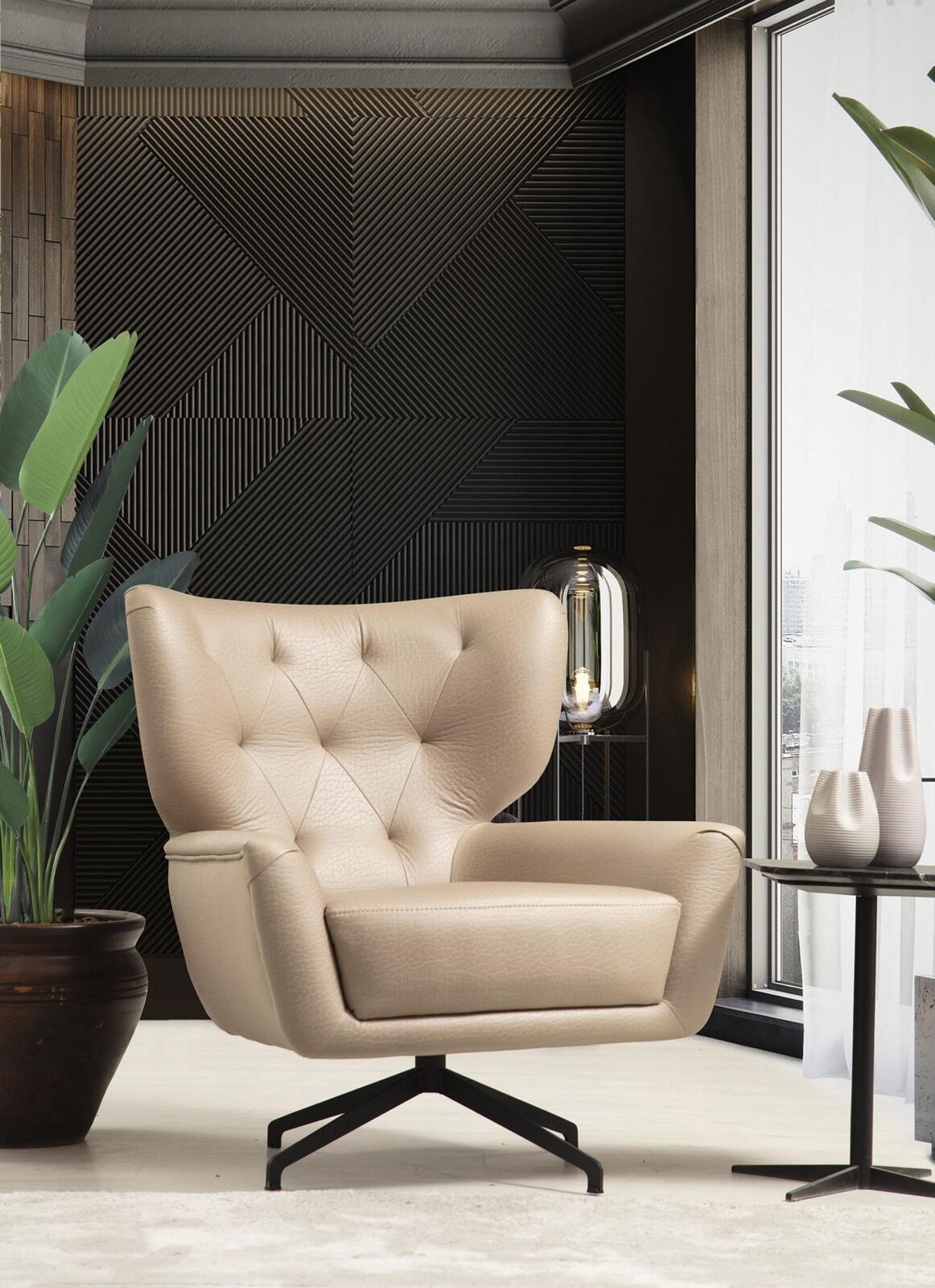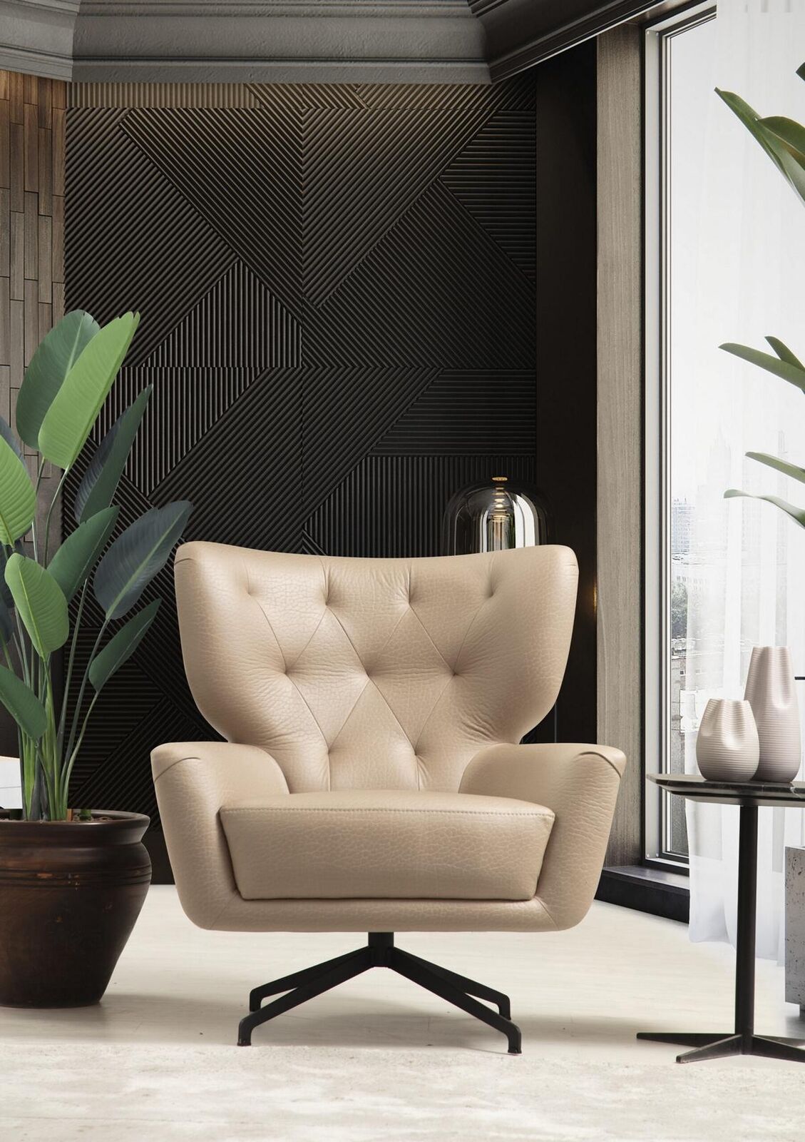 Sillón orejero, sillón, tapizado, 1 plaza, marrón, sillón de cuero moderno.