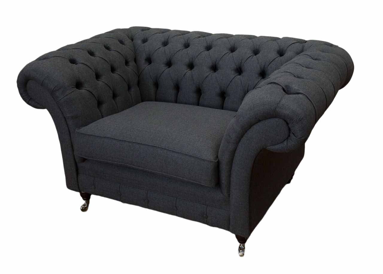 Sillón Chesterfield gris de 1,5 plazas Sofá Sofá Tapicería Textil Gris Sillón