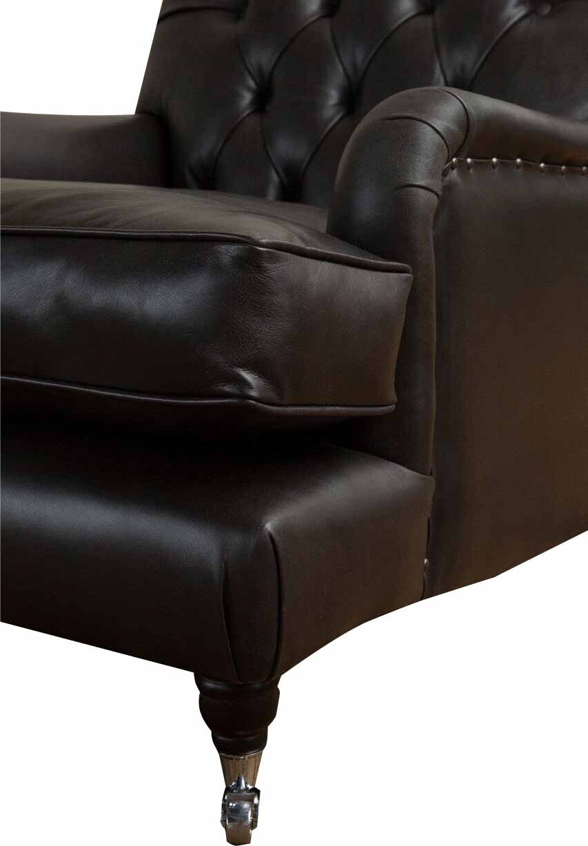 Sillón de diseñador de 1 plaza de cuero y tela marrón, sofá de lujo Chesterfield.