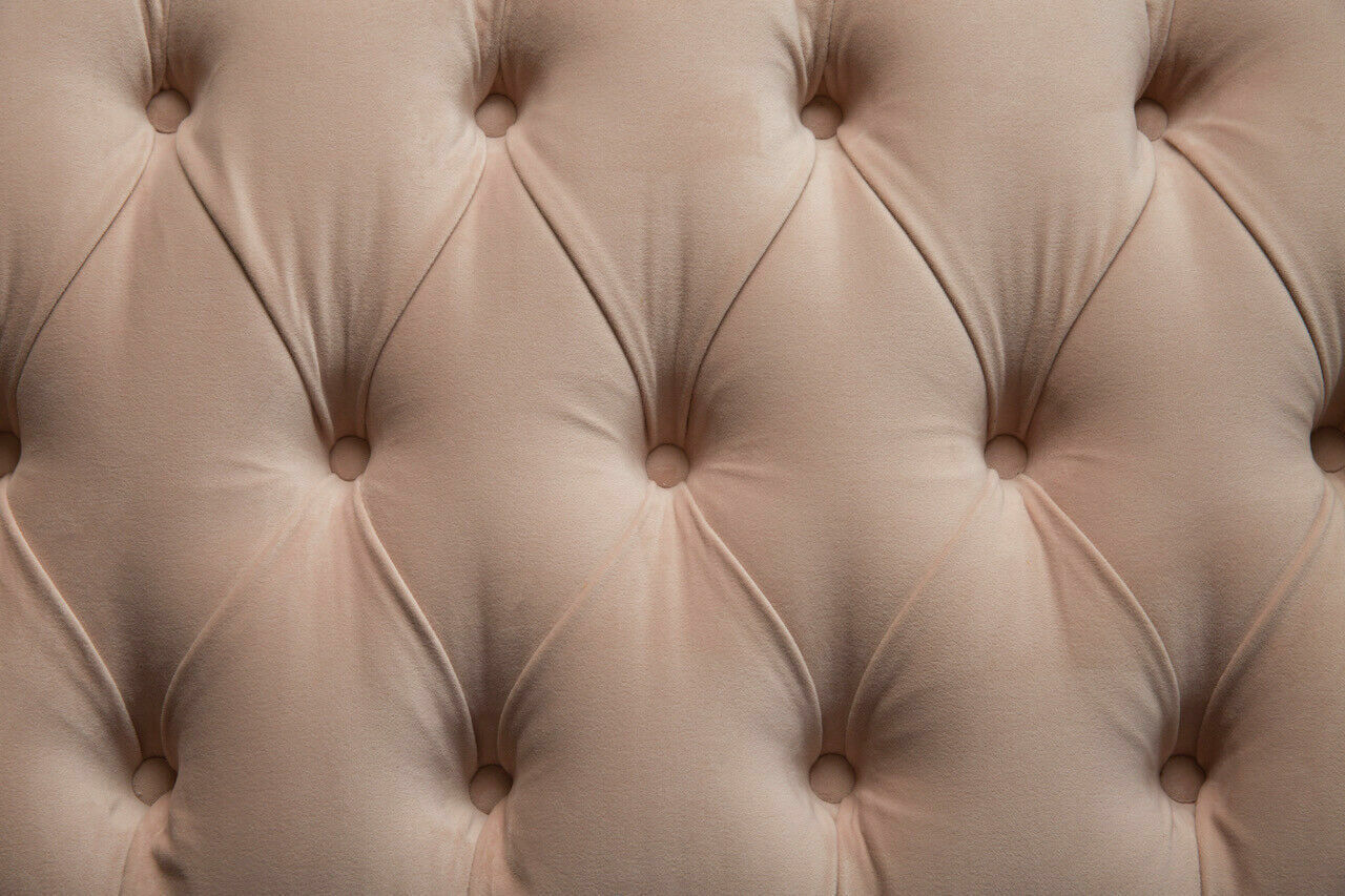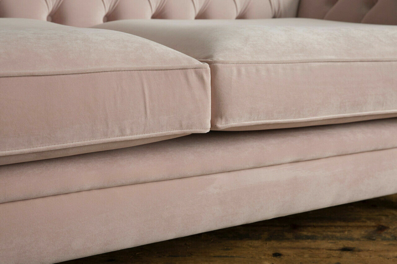 Sofá Chesterfield clásico de 4 plazas en terciopelo y cuero en diseño rosa de 240 cm.