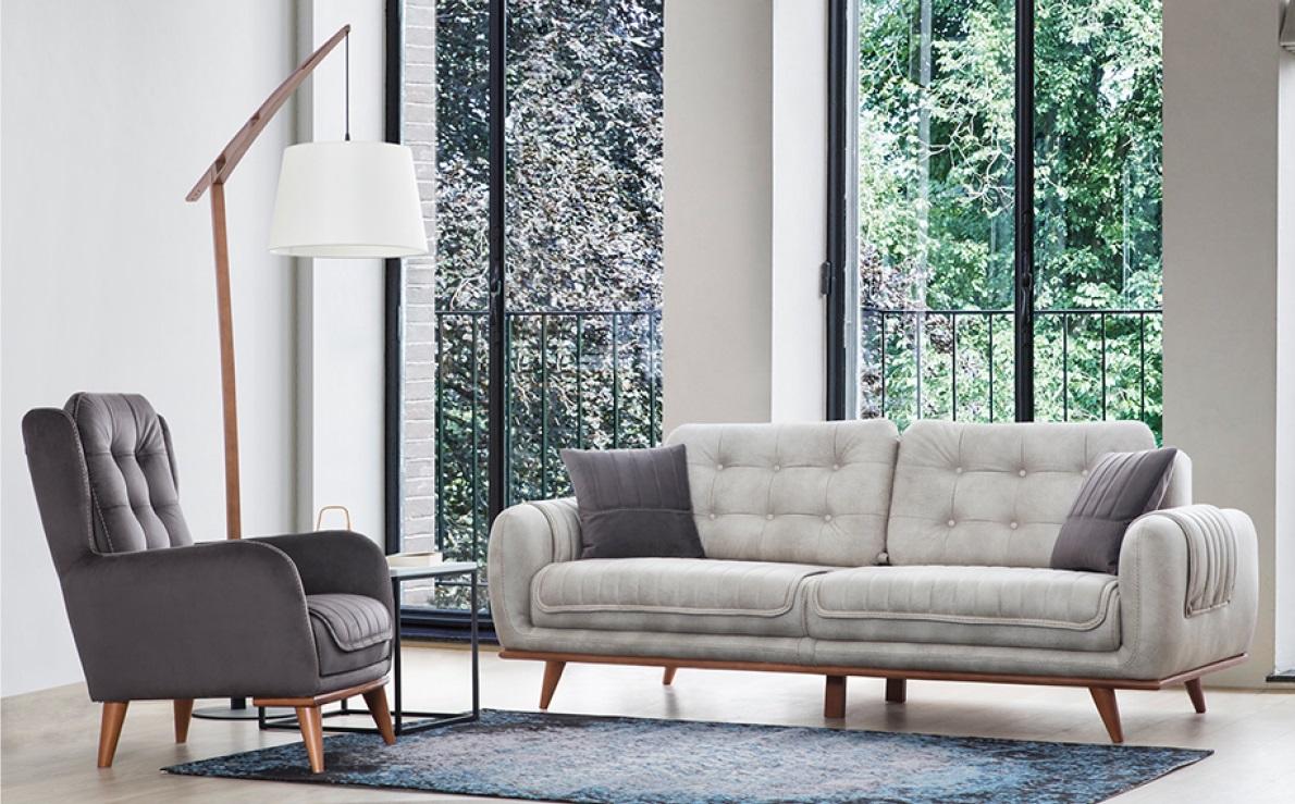 Sofá gris, sofá de salón, sofá acolchado, muebles, sofá de tres plazas.