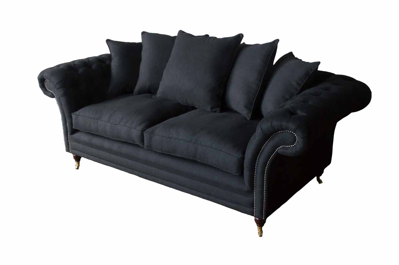Sofá de tela de 3 plazas con cojines de diseño de color negro, extra grande.