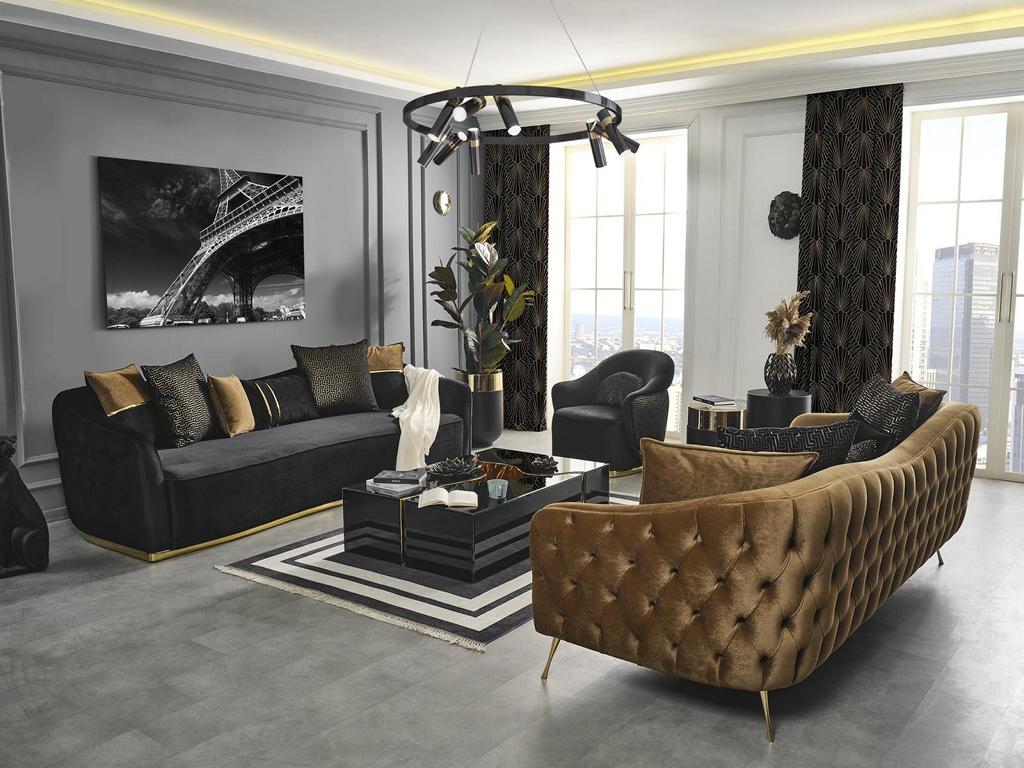 Juego de sofás de 3 plazas con mesa de centro conjunto de lujo de 3 piezas marrón nuevo.
