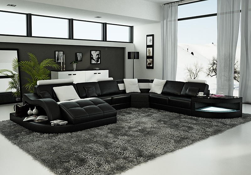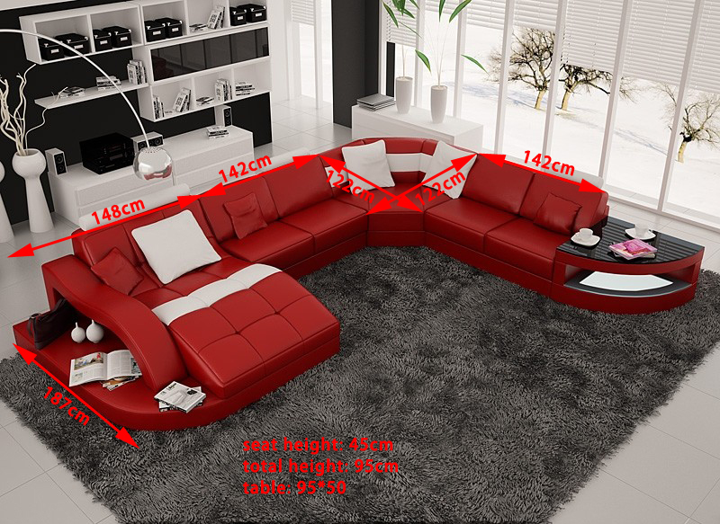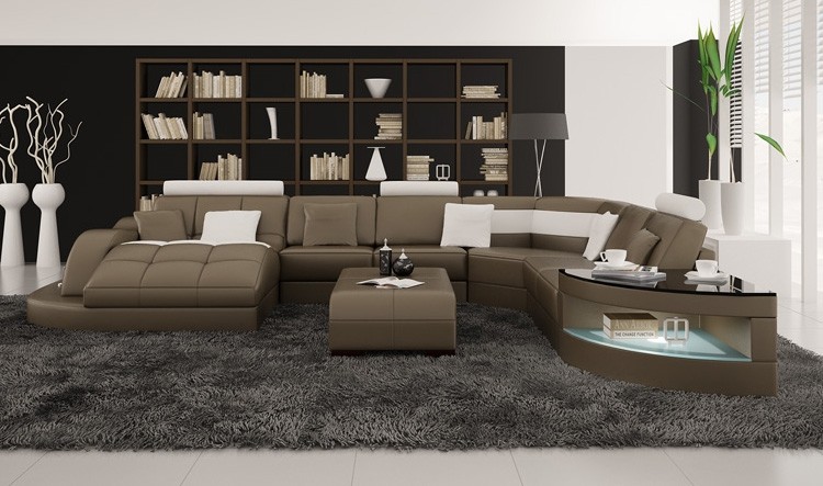 Conjunto de sofá moderno en forma de U tapizado con esquina de asiento + mesa de centro completa