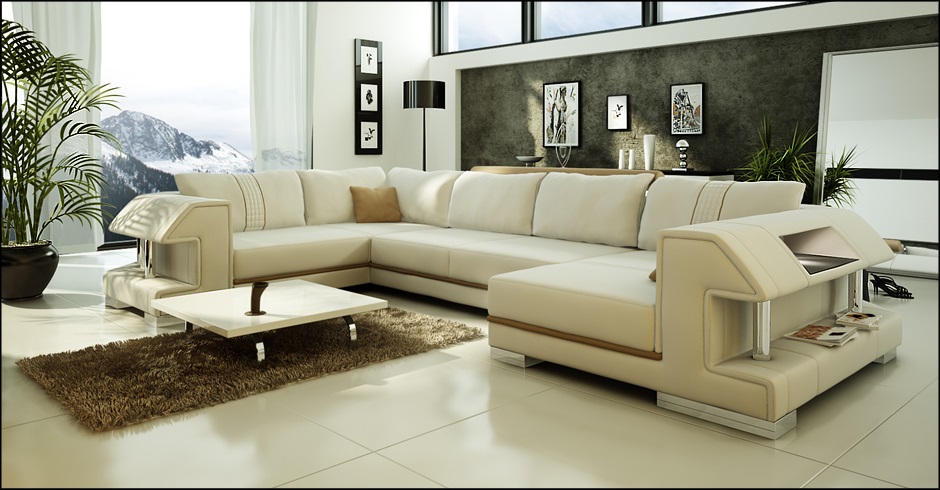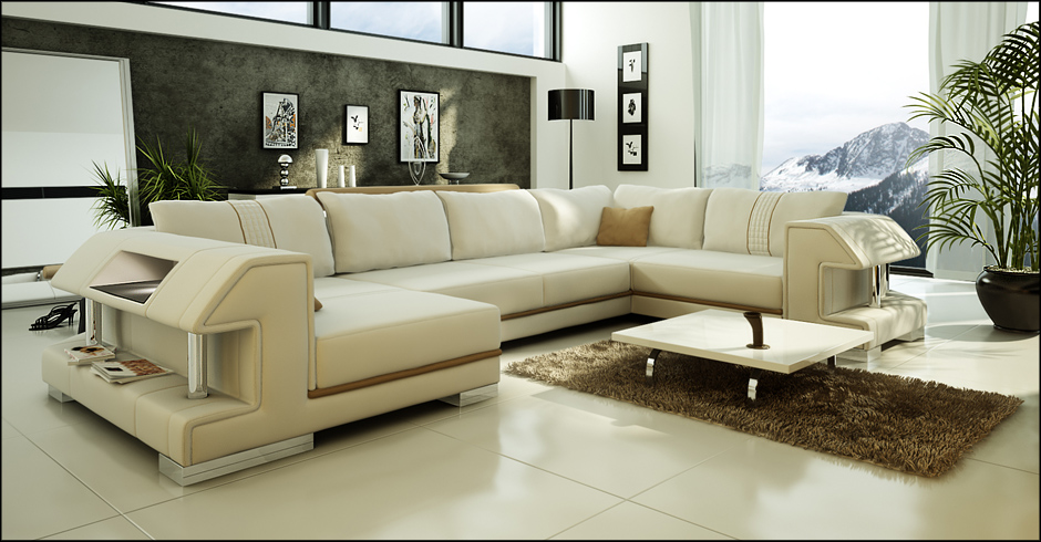 Sofá esquinero sofá sofá tapizado diseñador cuero XXL forma de U sofá de cuero salón