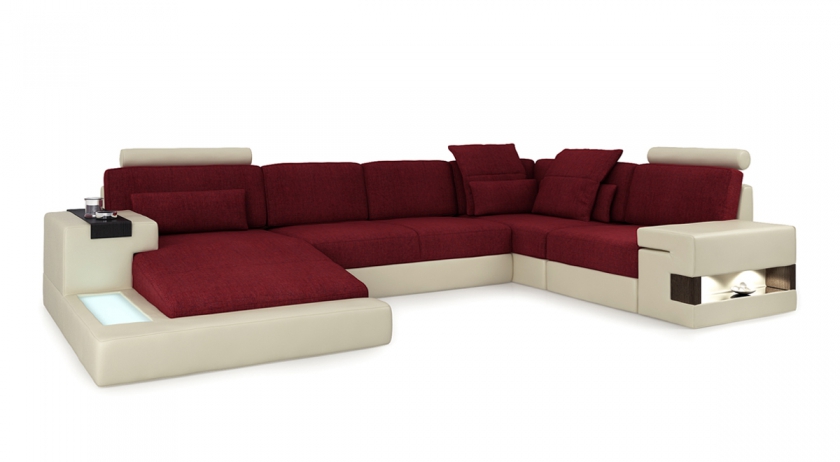 Sofá esquinero XXL en forma de U, paisaje de sala, sofá de cuero, sofá tapizado, textil, cuero, USB.