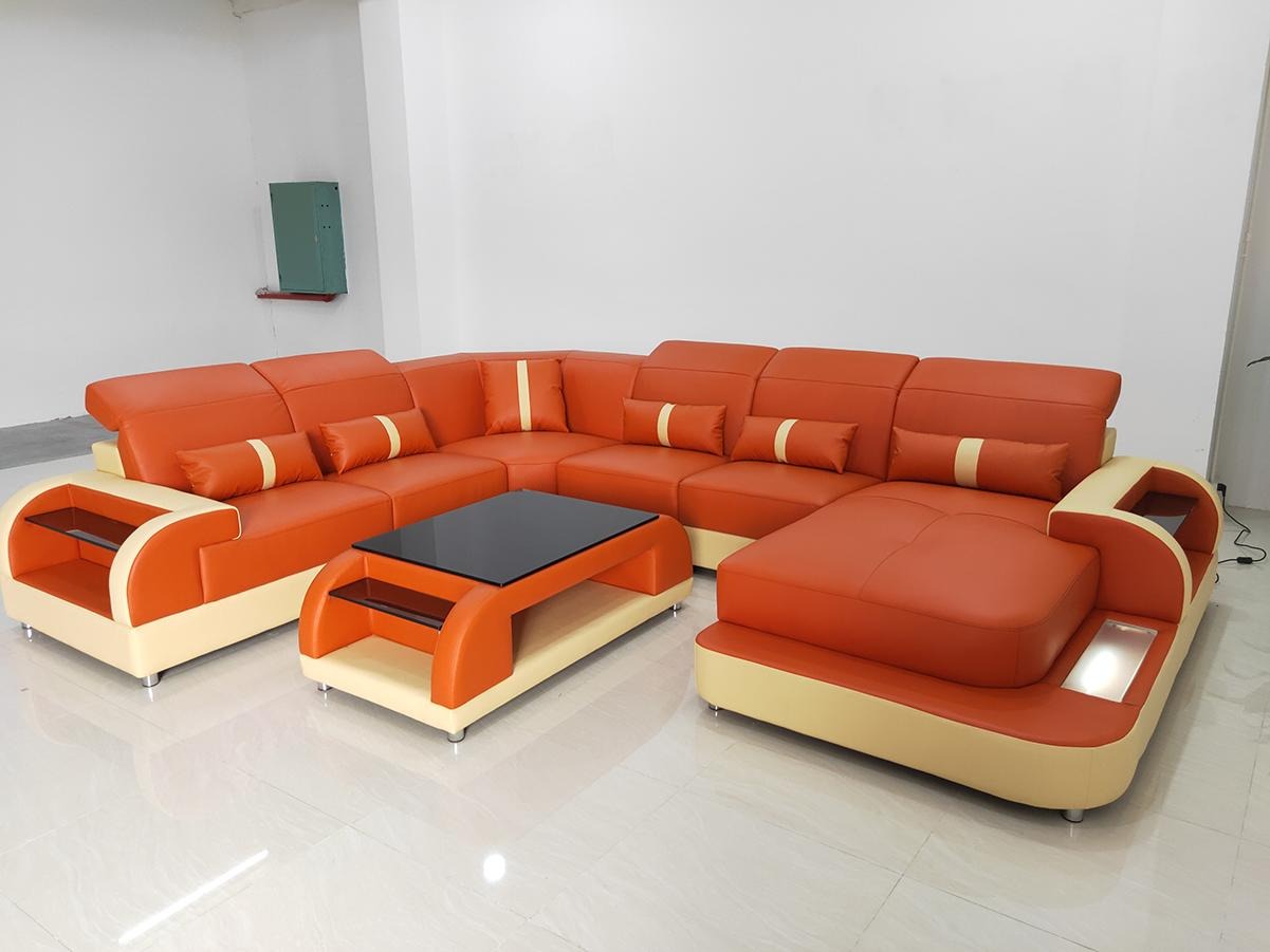 El sofá de lujo de cuero está fabricado con tejido de fibra de cuero premium (70% cuero / 30% poliéster)**, lo cual garantiza durabilidad y resistencia. Además, ofrece la posibilidad de personalización con opciones de color libre. Descubre las mejoras adicionales disponibles, como el reposapiés eléctrico reclinable para un mayor confort o el sistema de sonido a través de Bluetooth para disfrutar de tu música favorita. Experimenta un ambiente único con la iluminación de fondo con control remoto, que le dará un toque moderno y sofisticado a tu espacio. Con una estructura interna de madera auténtica y la opción de cuero auténtico premium, este sofá de esquina ofrece un estilo refinado y exclusivo.