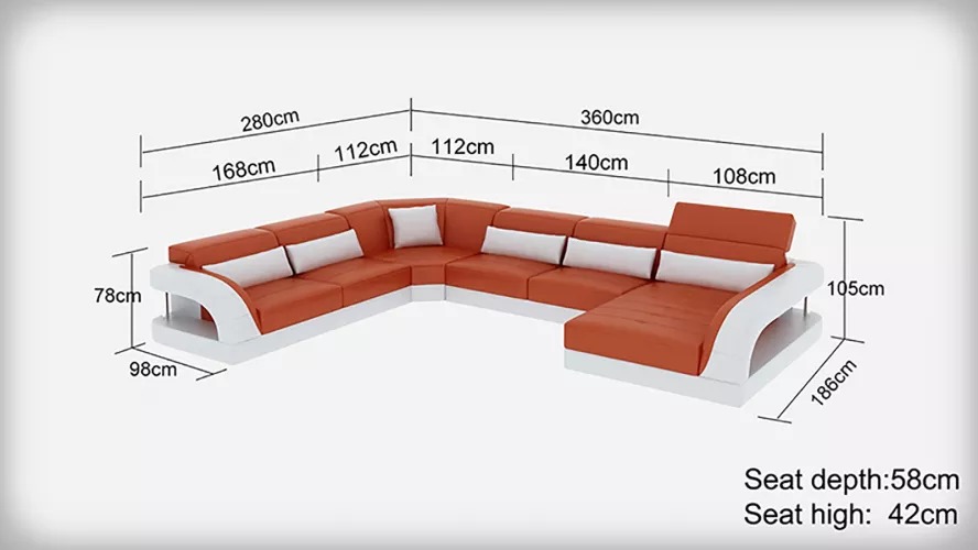 El sofá esquinero de sala de estar de diseño es la pieza perfecta para tu hogar moderno. Con una forma en U que ofrece un amplio espacio para relajarte, este sofá está diseñado para brindar comodidad y estilo a partes iguales. Sus dimensiones de aproximadamente 280 x 360 x 186 cm o 186 x 360 x 280 cm, junto con una altura de aproximadamente 78/105 cm y una profundidad de aproximadamente 98 cm, lo convierten en el centro de atención de cualquier sala de estar. La estructura interna de madera auténtica garantiza durabilidad, mientras que el material de cuero sintético premium (70% cuero / 30% poliéster) ofrece un tacto suave y elegante.