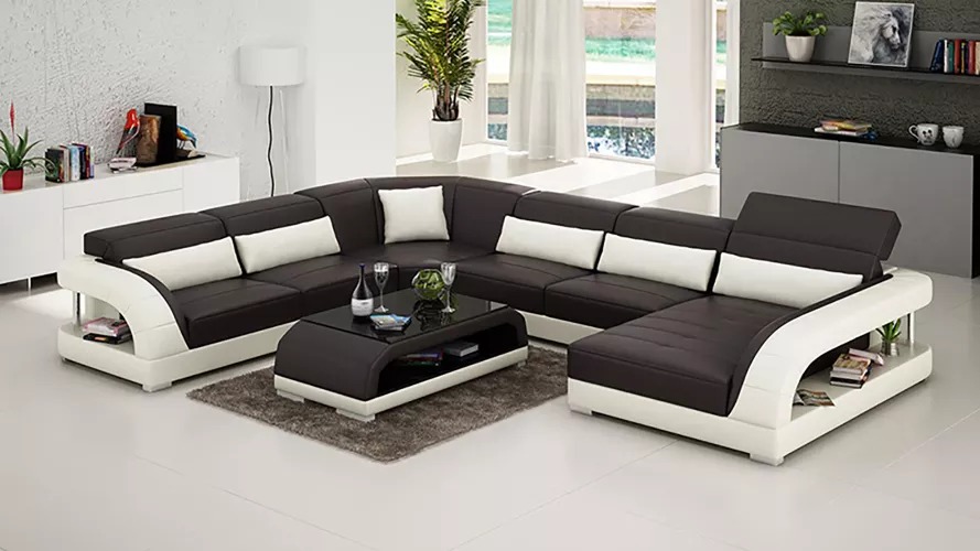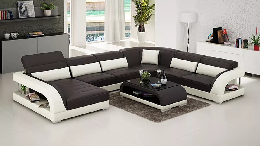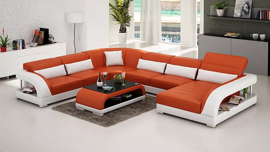 Diseño sofá esquinero sala de estar Muebles Sofá de esquina moderno con tapizado de cuero