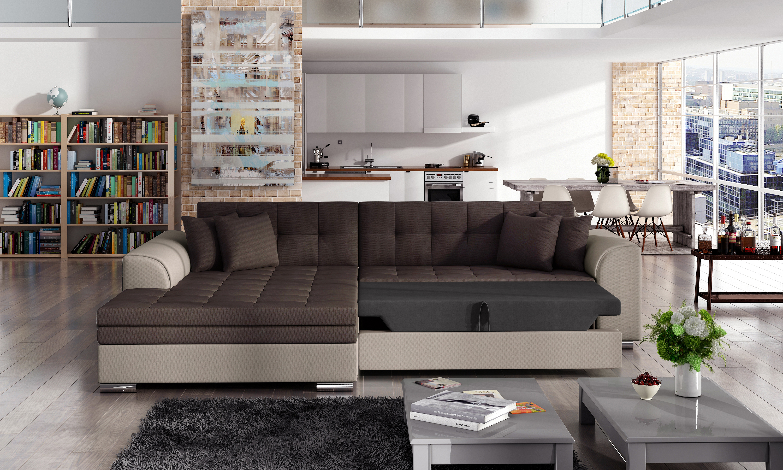 Diseño sofá esquinero con función de cama es la solución perfecta para tu sala de estar. Este elegante sofá acolchado de tela no solo brinda comodidad y estilo, sino que también cuenta con la versatilidad de convertirse en una cama funcional. Con unas dimensiones aproximadas de 295 x 195 cm en forma de L, este sofá esquinero se adapta fácilmente a cualquier espacio, ofreciendo asientos amplios y un diseño moderno a tu hogar. La elección de color libre y la variedad de materiales disponibles te permiten personalizar el sofá según tus gustos y necesidades, desde tejidos de alta calidad hasta cuero sintético opcional en diferentes grupos de precio.