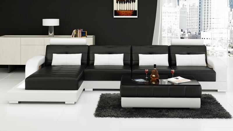 Sofá esquinero de cuero + mesa de café sofá de esquina sofá conjunto de muebles de tapicería paisaje de estar esquina