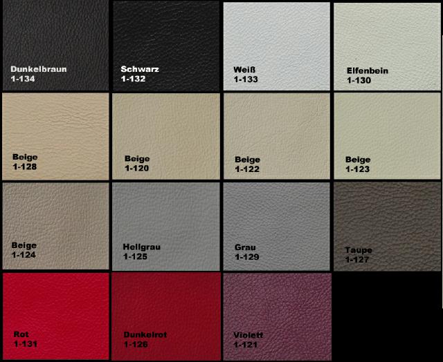Alle anderen Bezüge sind aus hochwertigem Kunstleder in der gleichen Farbe gefertigt