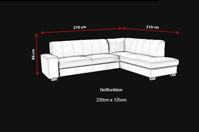 El **Sofá sofá cama sofá de diseñador con función de cama + cajón para ropa de cama sofá de esquina sofá nuevo** es una elección versátil y elegante para tu hogar. Con dimensiones de aproximadamente 276 x 210 cm o 210 x 276 cm, este sofá ofrece comodidad y estilo. Puedes elegir libremente el color de tu preferencia, con la posibilidad de consultar otros colores. La elección del material es totalmente personalizada, con opciones de tela o cuero sintético premium en diferentes grupos de precios. La función de cama con un área de descanso de aproximadamente 220 x 125 cm, junto con el baúl de cama incluido, añaden practicidad a este sofá único. Además, la posibilidad de incorporar iluminación LED en la parte inferior por un costo adicional de +99,00 EUR agrega un toque moderno a tu espacio.