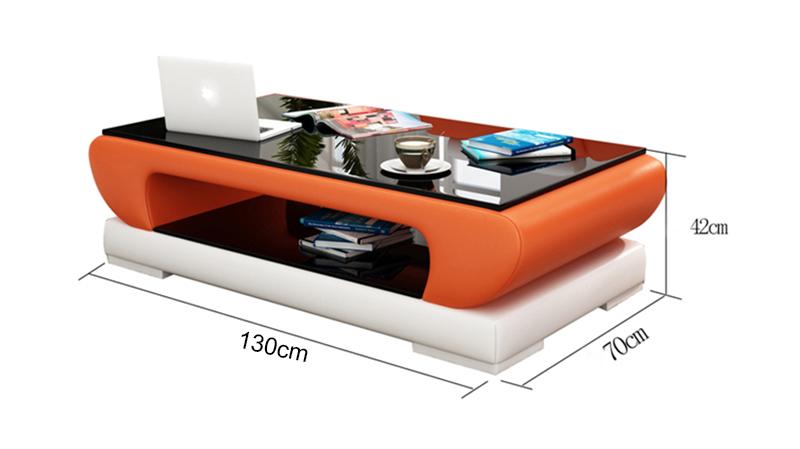 Para los amantes de la elegancia y la funcionalidad, la Diseño mesa de vidrio Sofá de cuero Mesa de centro Mesas de vidrio Sofá Mesas de sala de estar es la pieza perfecta para realzar su sala de estar. Con un diseño moderno y sofisticado, esta mesa combina a la perfección un elegante marco de cuero premium con un toque de vidrio elegante. Sus dimensiones generosas de aproximadamente 130 cm de longitud, 42 cm de altura y 70 cm de profundidad la convierten en el centro de atención de cualquier espacio. La estructura interna de madera real garantiza una durabilidad excepcional, mientras que la posibilidad de elegir entre colores libres le permite personalizar su ambiente según sus preferencias.