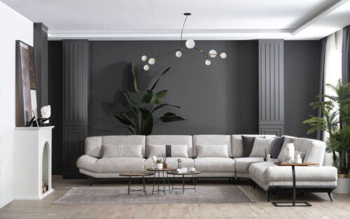 Conjunto de sala de estar blanco - sofá en forma de L, mesa auxiliar de sofá - 2 piezas