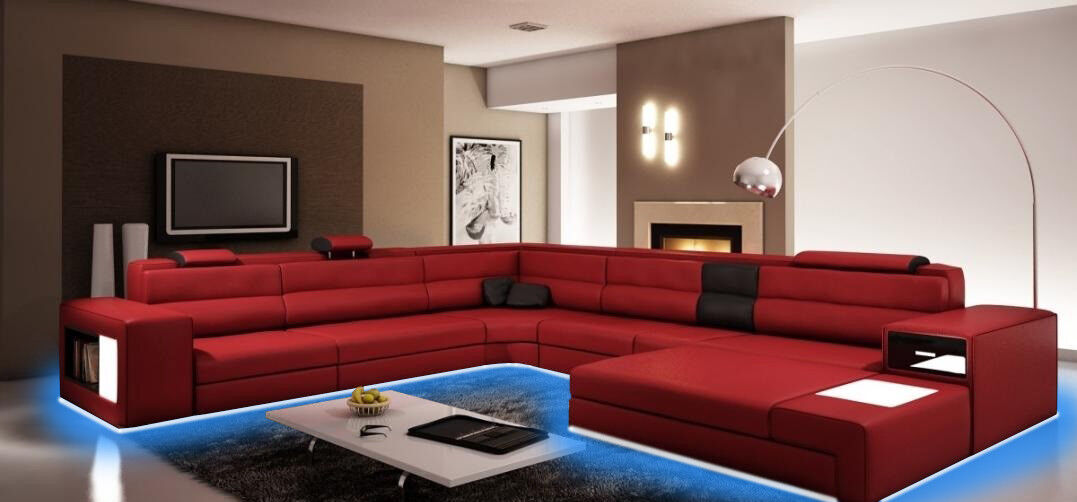 Sofá en forma de esquina Sofá Sofá Tapizado Diseño Conjunto Textil Cuero Sofá de salón