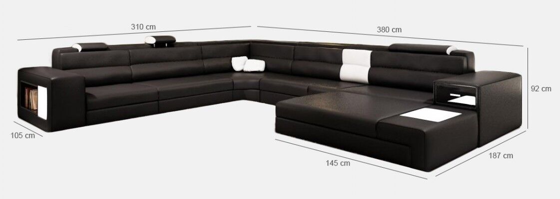 El Sofá en forma de esquina Sofá Sofá Tapizado Diseño Conjunto Textil Cuero Sofá de salón es una pieza imprescindible para tu hogar. Con un diseño elegante y sofisticado, este sofá combina a la perfección estilo y comodidad. Su amplia medida de longitud de 310 x 380 x 187 cm o 187 x 380 x 310 cm, altura de 92 cm y profundidad de 105 cm proporcionan un espacio amplio para relajarte con la familia y amigos. La función de cama opcional por un suplemento de 349,00 euros brinda versatilidad a tu sala de estar.
