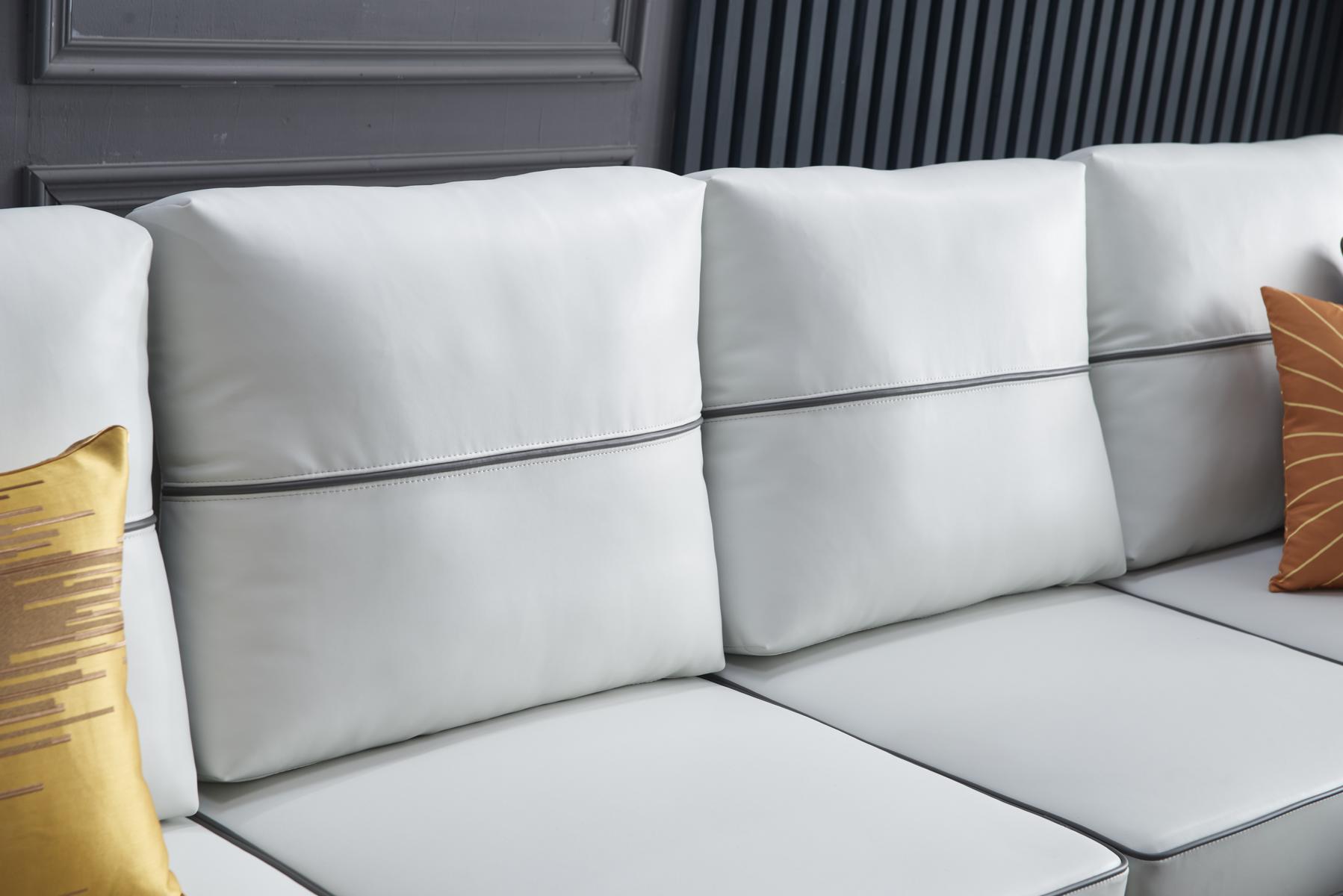 Conjunto de sofá en forma de L para la sala de estar con sillón decorativo, set de muebles moderno de cuero.