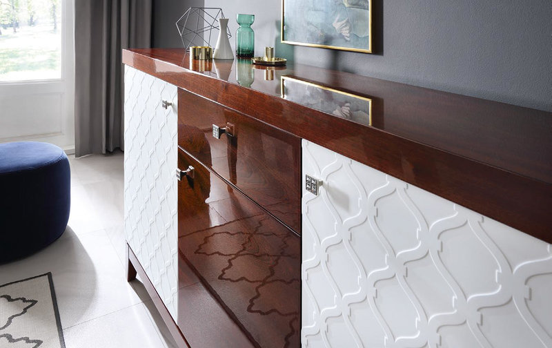 Parte trasera & estantes: MDF (tablero de fibra de madera de densidad media), chapado & lacado