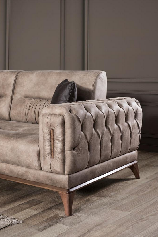 Hecho con una estructura de madera y tapizado en tela, este sofá combina durabilidad con estilo. Ideal para complementar una sala de estar moderna o clásica, este sofá es perfecto para ver películas, disfrutar de una buena lectura o simplemente descansar después de un largo día de trabajo. Ya sea que lo coloques en tu sala de estar principal, en una sala de entretenimiento o en un rincón de lectura, el Sofá de tres plazas gris almohadillado de lujo Chesterfield se convertirá rápidamente en el centro de atención y en el lugar favorito de tu hogar para relajarte y descansar.