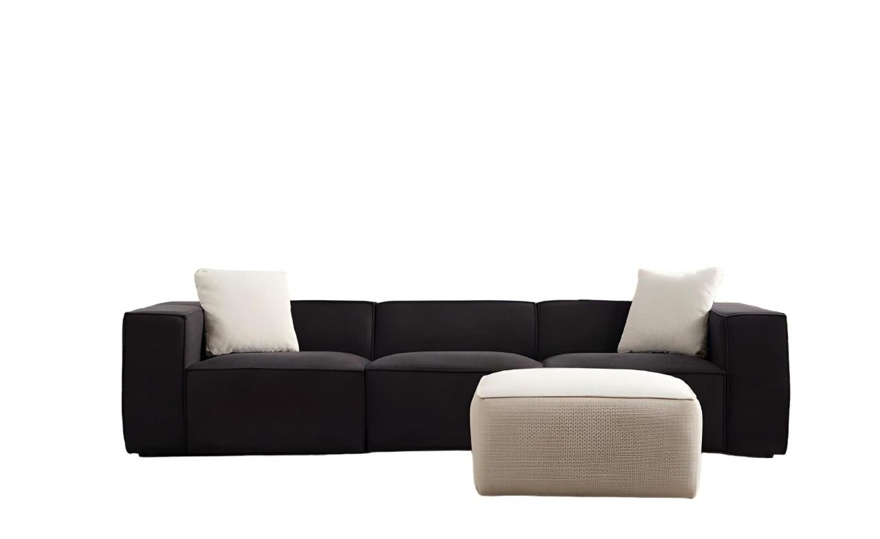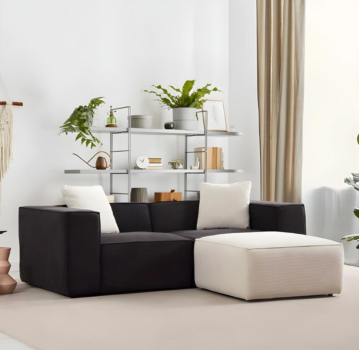 Conjunto de sofá de tela blanca y negra, lujoso sofá de 4 plazas con puff de 2 piezas | xlmuebles.es