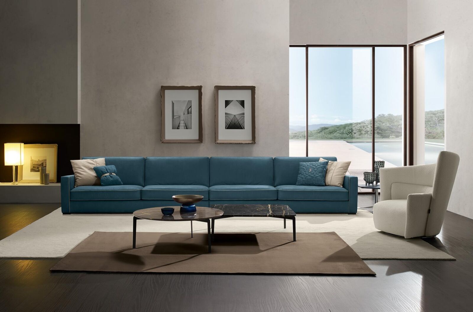 Sofá de 4 plazas tapizado en cuero Diseño de sofás italianos Muebles azules.