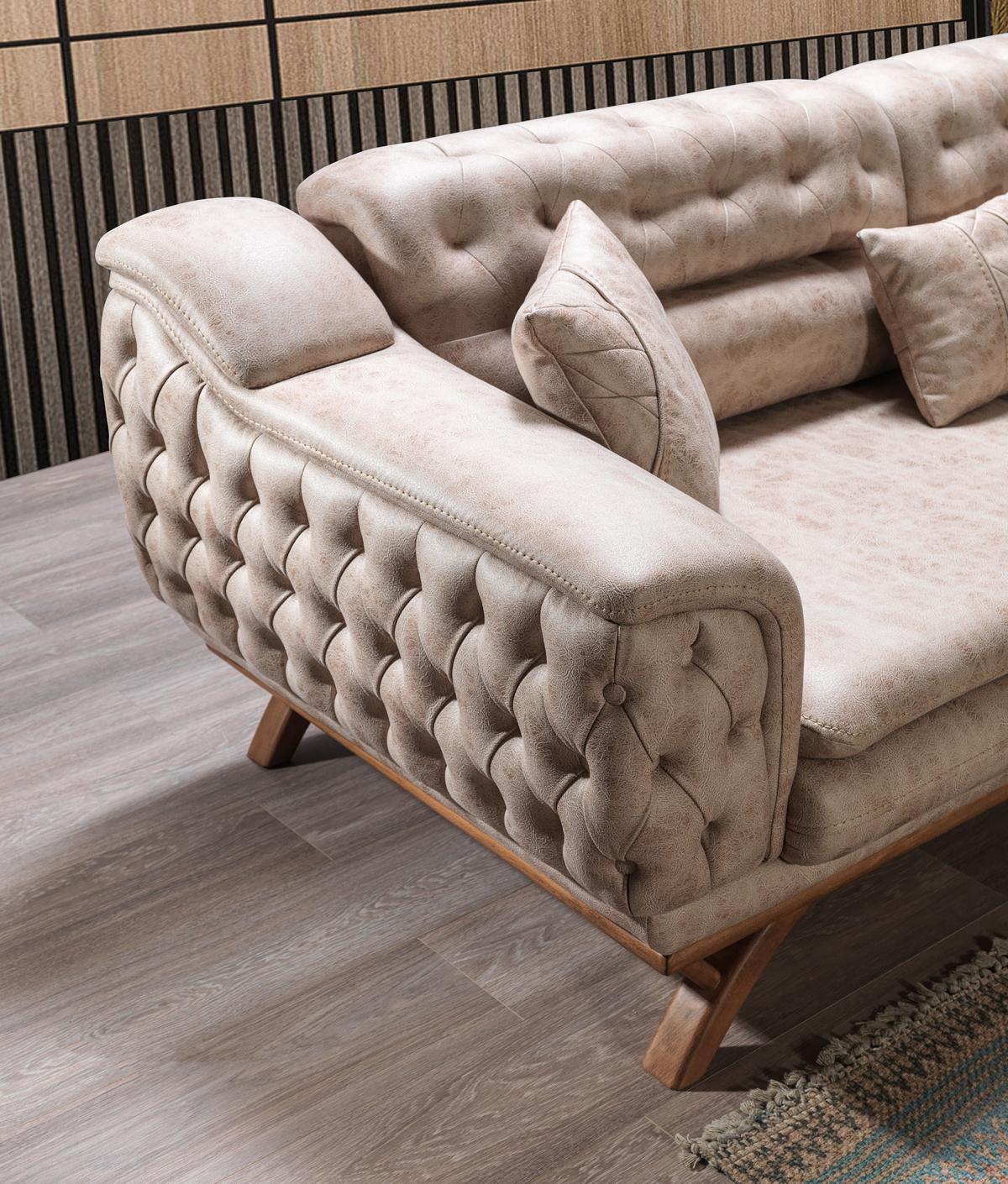Chesterfield de 3 plazas en beige diseño de sofás acolchados de tela.