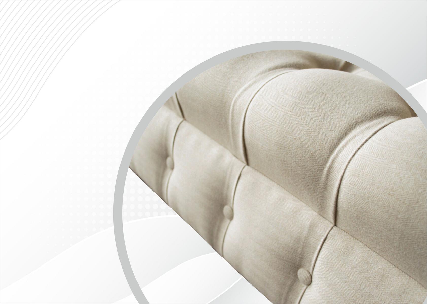 Disfrute de momentos de relajación y convivencia con amigos y familiares en este sofá Chesterfield. La profundidad aproximada de 98 cm y la profundidad del asiento de 55 cm garantizan una experiencia confortable. Ya sea viendo televisión, leyendo un libro o simplemente descansando, este sofá es el lugar ideal. El núcleo de resorte incorporado ofrece un soporte adicional y mantiene la forma del sofá a lo largo del tiempo. Añada un toque de sofisticación a su sala de estar con este elegante y moderno sofá Chesterfield en crema, diseñado para satisfacer sus necesidades de confort y estilo.