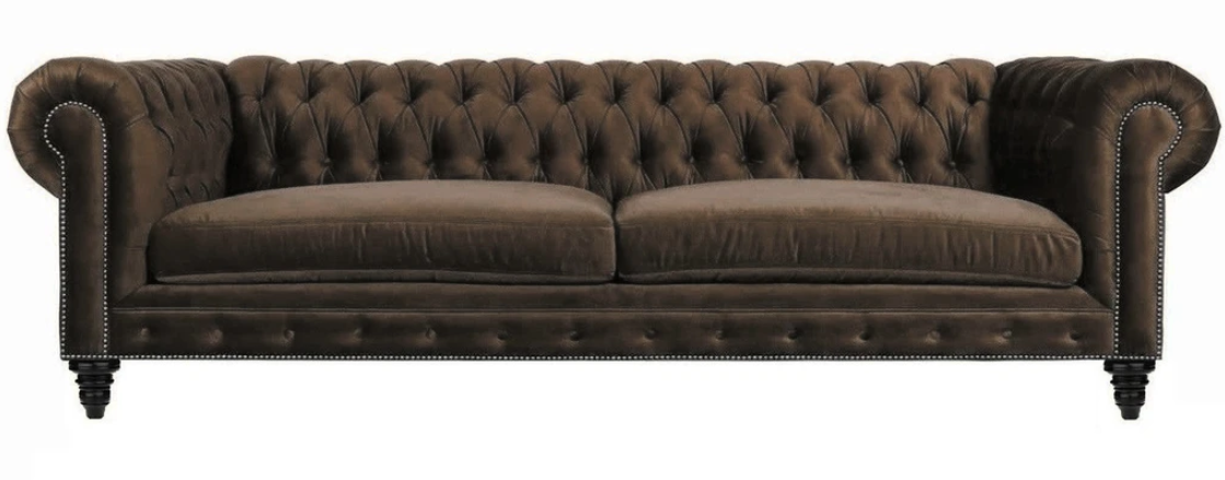 Chesterfield marrón Nuevo Sala de estar moderna Sofá de tres plazas Muebles creativos Textil Tela