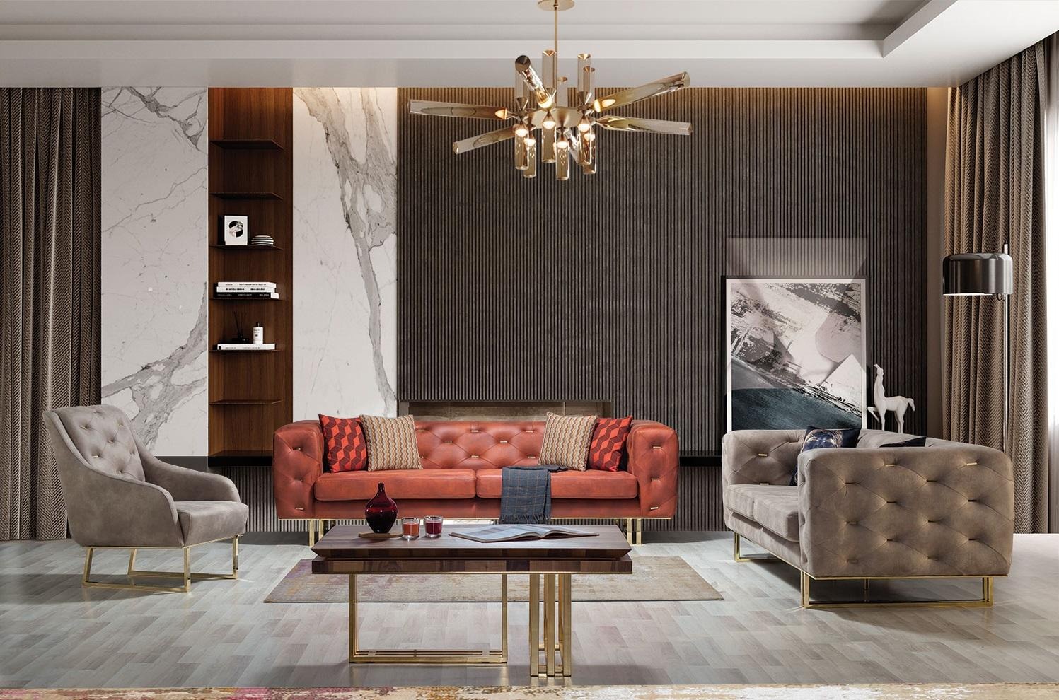Chesterfield Textil Sofá en tela Diseño elegante Muebles clásicos marrón de 3 plazas