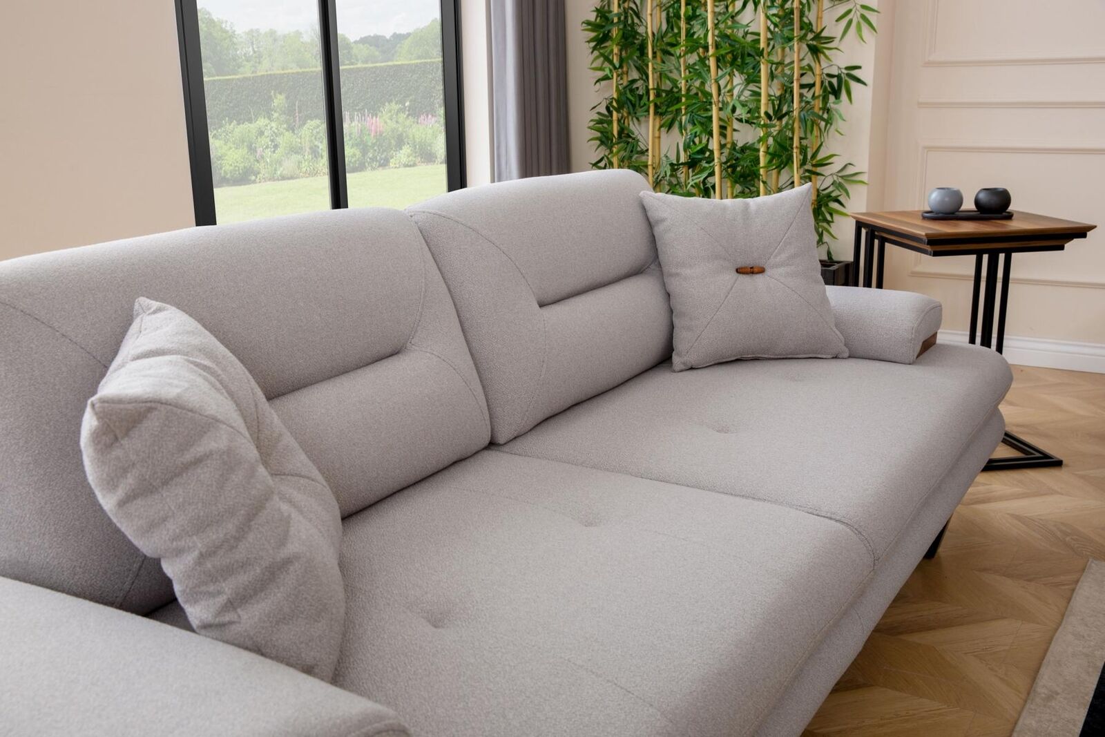 El sofá gris de 3 plazas en estilo moderno no solo es un mueble funcional, sino también un elemento decorativo que realza el ambiente de cualquier sala de estar. Su color neutro se adapta fácilmente a diferentes estilos de decoración, lo que permite una fácil combinación con otros muebles y accesorios. Ya sea para disfrutar de una tarde de lectura, reuniones con amigos o simplemente descansar, este sofá se convierte en el punto focal del espacio, agregando sofisticación y confort. Con su diseño elegante y materiales de alta calidad, este sofá ofrece un equilibrio perfecto entre estilo y comodidad para disfrutar en el hogar.