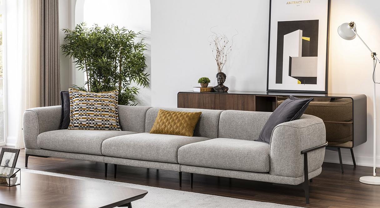 El Sofá de tres plazas Sofá de 3 plazas Sofá de tela Sofás Moderno Gris Tela Sofá Nuevo es ideal para crear un ambiente acogedor y contemporáneo en tu hogar. Su color gris neutro se adapta fácilmente a diferentes estilos de decoración, desde minimalista hasta más tradicional. Colócalo en tu sala de estar, sala de entretenimiento o incluso en un espacio de oficina para disfrutar de su comodidad y estilo. Ya sea para descansar después de un largo día de trabajo o para recibir a tus invitados con elegancia, este sofá será el centro de atención de tu ambiente. ¡Renueva tu hogar con este sofá moderno y funcional!