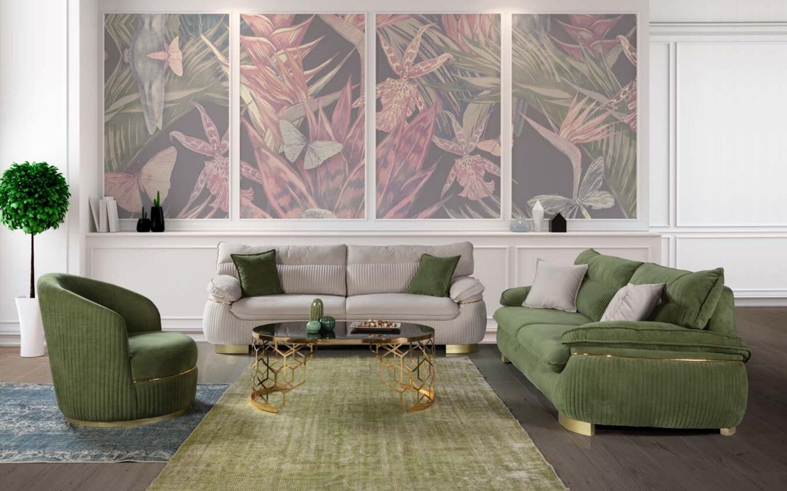 Sofá de tres plazas Sofá de 3 plazas Sofá de tela moderna Sillón Muebles de terciopelo suave Beige
