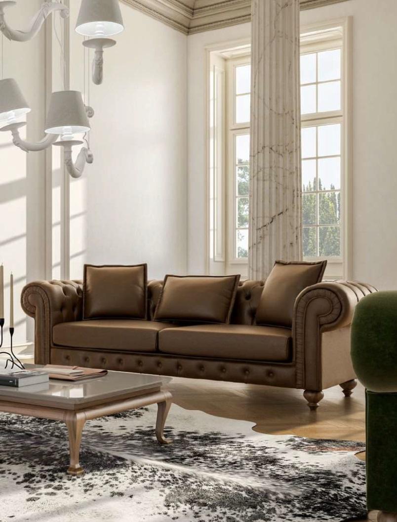 Sofá de tres plazas marrón de lujo en cuero para la sala de estar Nuevo.