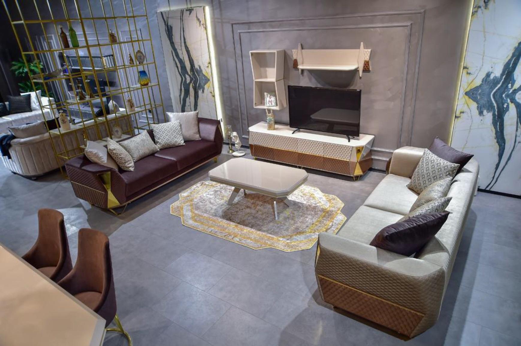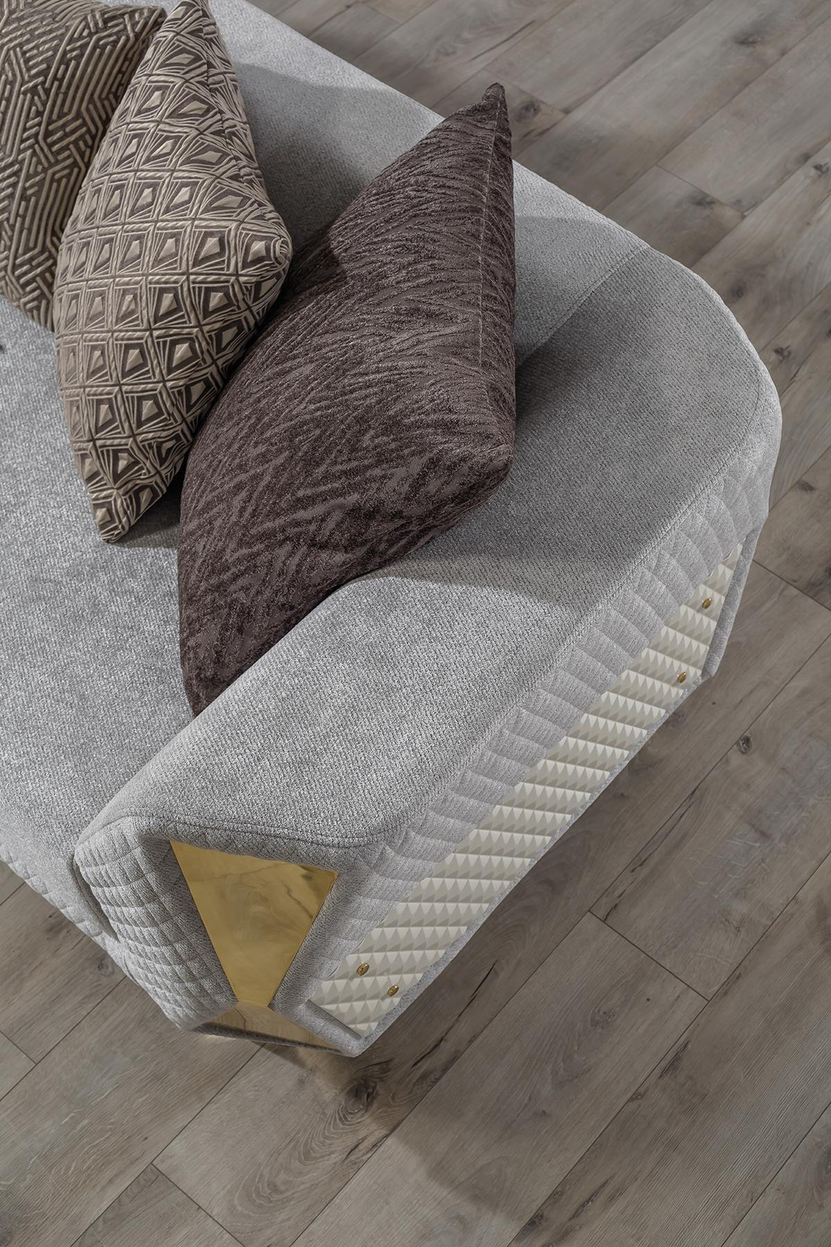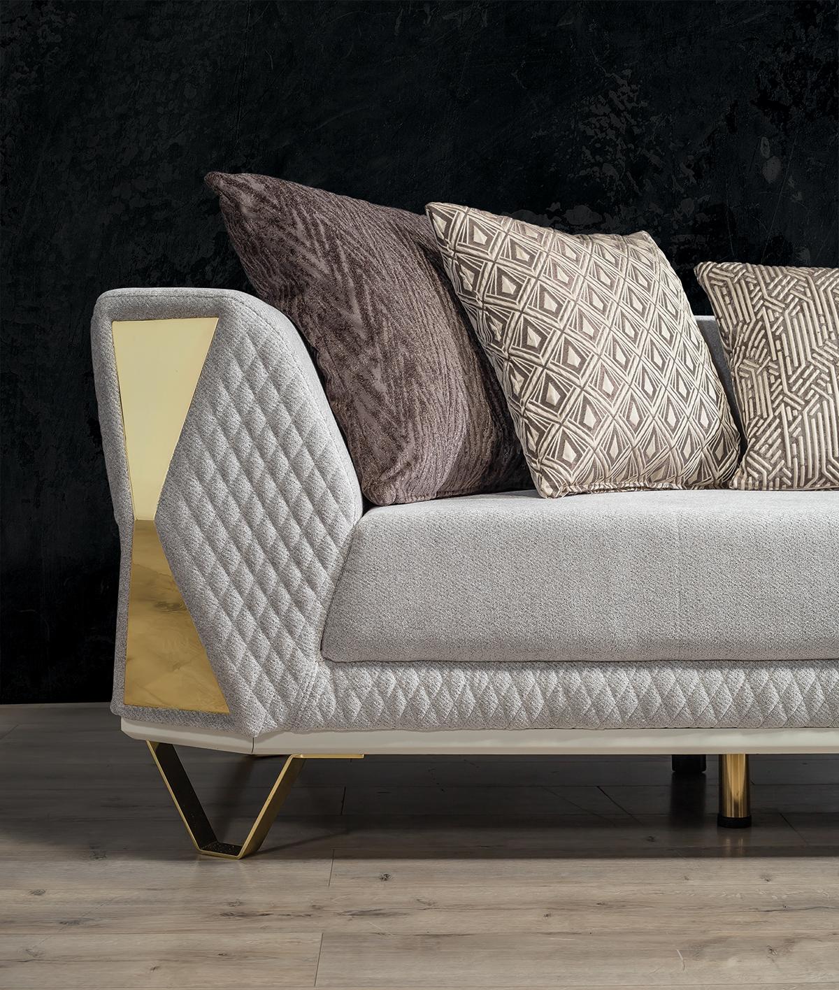 Sofá extravagante de tres plazas para la sala de estar, tapizado en tela.