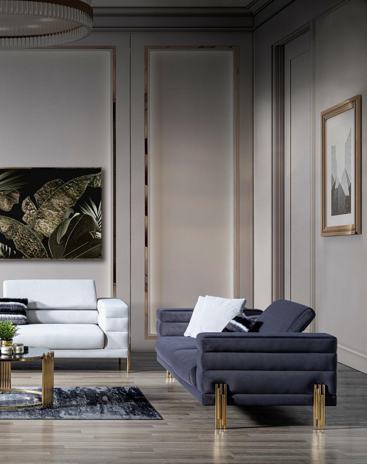 Sofá de tres plazas, sofás de 3 plazas, tela gris, sala de estar de lujo moderna.